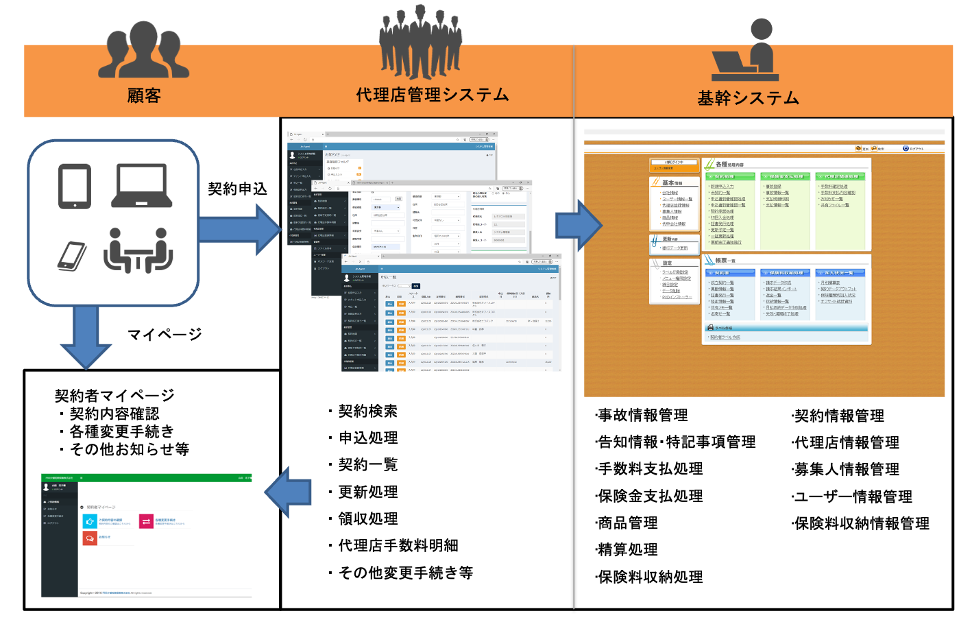 保険申込みから契約管理まで、少額短期保険業務に必要なすべての事務処理をカバーします。